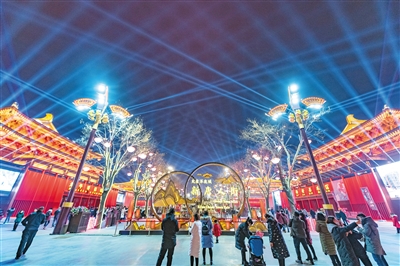 今年的光影將進一步展示最美夜西安的魅力。大唐不夜城·新唐人街全方位融合街景已進行氛圍布置,共設(shè)置42組文化氛圍裝置,分為燈組氛圍、裝置氛圍、藝術(shù)景觀小品、文創(chuàng)藝術(shù)裝置四個類別。目前,已完成團花繡球燈組及部分文創(chuàng)IP藝術(shù)裝置共5組。其余正在陸續(xù)進場安裝及制作中。作為世界燈光重鎮(zhèn),法國尼斯市也將在春節(jié)期間表演燈光秀,為西安帶來世界的問候。此外,西安城墻還將推出AR互動體驗、“盛唐第一門”3D光影大秀等活動。